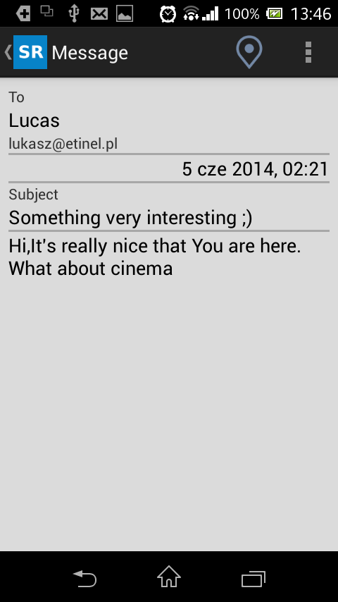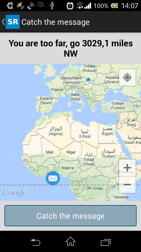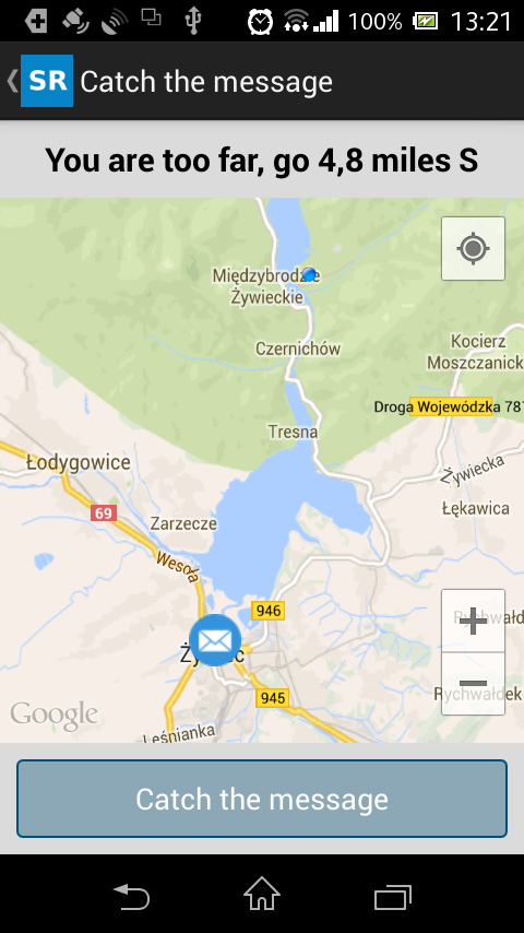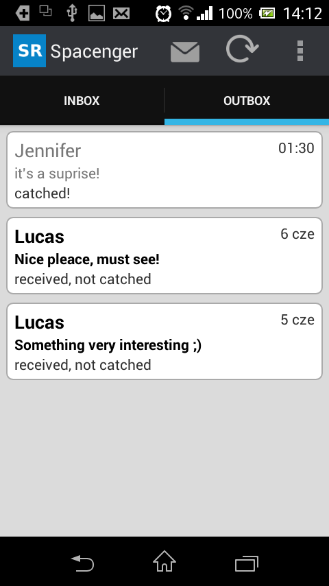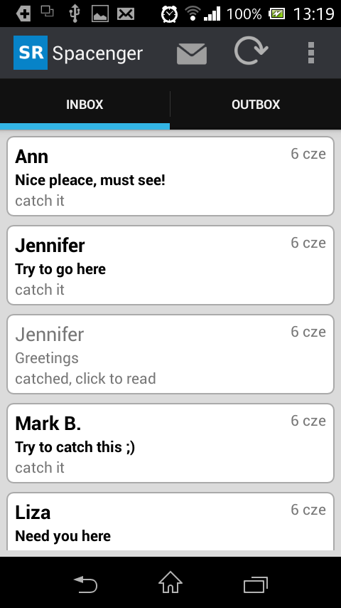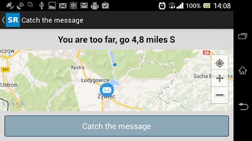 Just click new message button, application will find your location. Write the message and send it. Recipient will receive email notification that you sent him a message. But to read the content he must get Spacenger app and go to the place where the message was leave.
