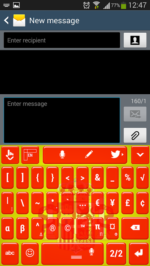 Spanish people are friendly, joyful and love to celebrate and what can be a better reason for a celebration than your wonderful country. To help you express the love for your beautiful land we have created the Spain keyboard theme. Customize your keyboard with the vivid colors that represent Spain and show everyone how proud you are of Spain. Download the Spain theme and you will have a constant reminder of everything you enjoy about this amazing place.