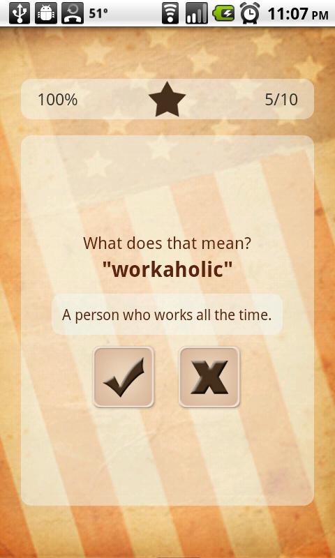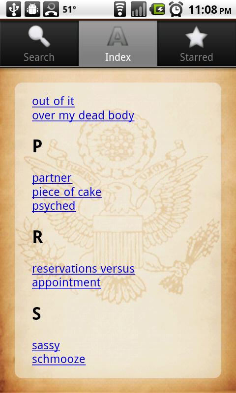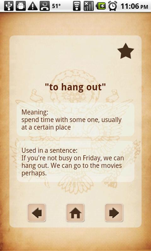 Speak like an American introduces you to words, phrases, slangs & idioms that are in common-use among American English speakers with the goal of teaching you how to speak like a native American. We've included examples with each entry. You can "star" interesting items and take a quiz to see how much you learned.