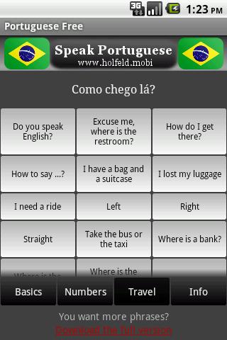 Speak Portuguese - for FREE! Hear&Learn the language of Brazil and Portugal! 133 ESSENTIAL phrases for your trips to Rio or Sao Paulo. QUICK and USEFUL!