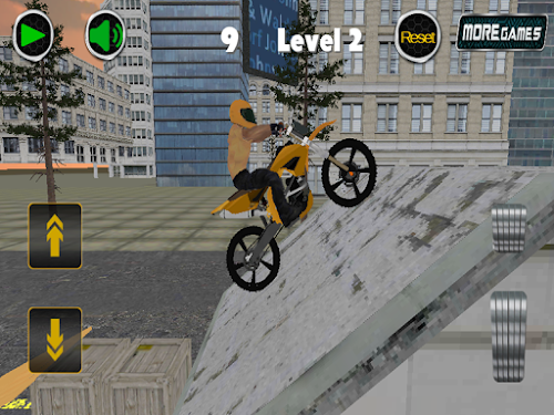 1) The game is divided into 9 levels, you will test will test your skills and driving motorcycles.
