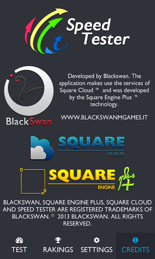 Speed Tester was developed by Square Engine Plus ™ technology and uses the services offered by Square Cloud ™ in order to make comparisons online globally.