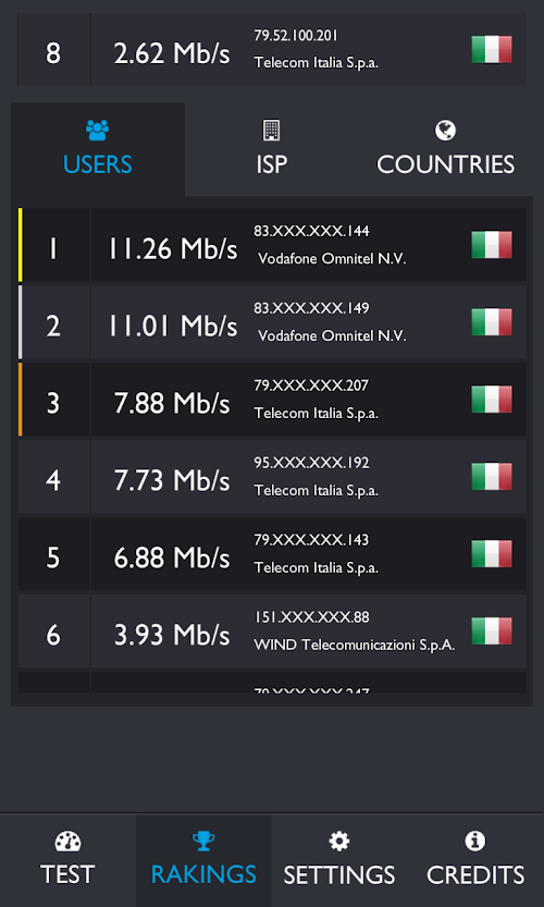 Will also allow you to compare your results with the rest of the users or to compare your ISP than others and, finally, to compare the global average connection speed of your nation with all the others!