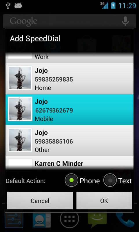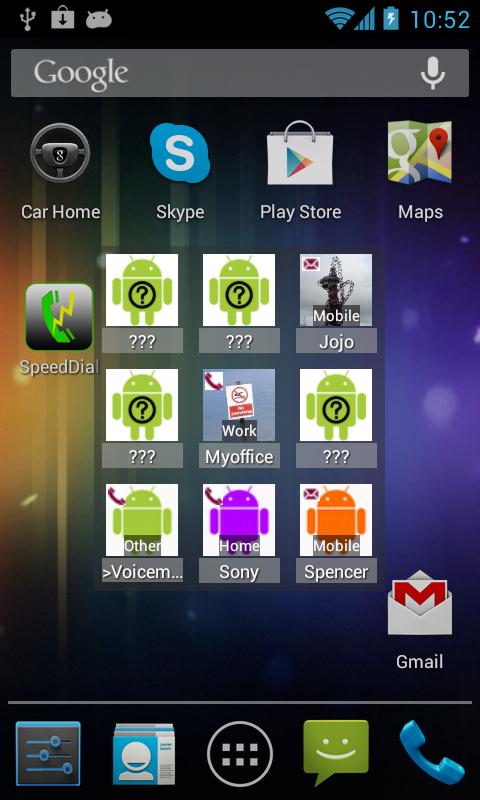 SpeedDial is a small Android widget allows to create up to 9 speed dial contacts that DIAL or TEXT to selected phone number (Similar to quick dial or quick sms widget from Google).