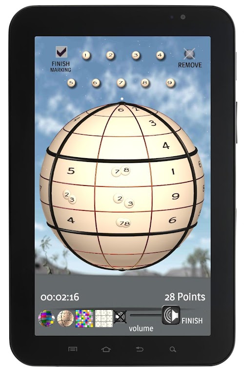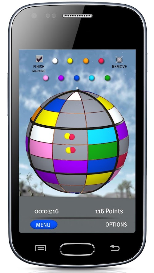Basically, Spheroku would be just another Sudoku App in a very crowded field... However, there is a new twist, that takes it apart from all other Sudoku Apps: because its grid is wrapped on a sphere, Spheroku is not static, but must be rotated, observed and even memorized. There is also another difference -- instead of 9 numbers, Spheroku uses 9 colors which makes the game experience even more challenging and fun. Altogether, working on Spheroku is reminiscent of solving the Rubik's cube. Sudoku & Rubik's Cube - two of most popular brain twisters in history combined in one... Not a bad combination!