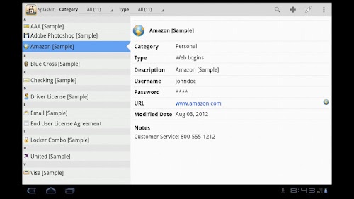 Where do you keep your sensitive data now? SplashID securely stores usernames, passwords, credit cards, bank accounts, PINs, frequent flyer numbers, and more.