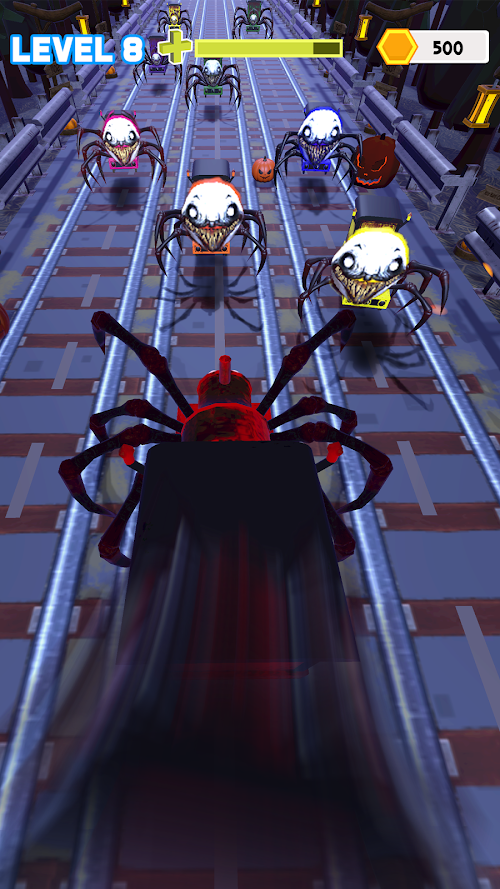 Gear up for an exhilarating spider prank of horror games experience with Spooky monster: Take on the Spooky charlie battle train for survival games challenge and upgrade your battle train speed, health, damage, heavy guns, and armor while playing your favorite levels of escaping Spooky charlie. With every play, you will get an upgrade that will take your train jump and skills of shooting games in the category of horror games to the next level and make the train survival even more exciting.