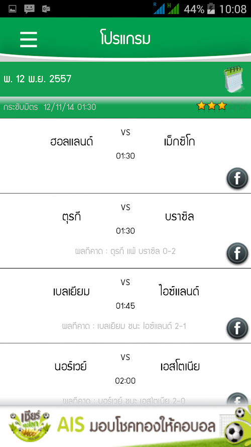 Is an application that collects data related to football from all over the world such as the English Premier League, Spanish La Liga, Bundesliga Germany, Serie A Football Italian, French Ligue and the Champions League. the other Onto mobile To facilitate the diehard fans with the compelling content. Scores and Results Critical games before the match With a probability Competitive program that never lets you miss a shot. Standings Update your favorite team immersed.