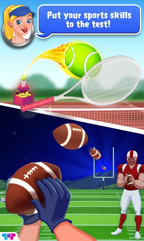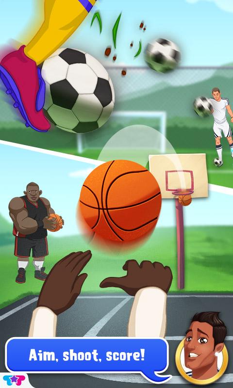> Swipe to make a soccer goal, toss the football, serve the tennis ball, and make a basket in 4 mini-games!