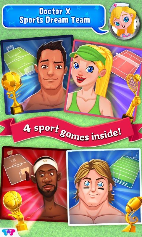 Unleash a whole new world of football, soccer, basketball, and tennis fun! As you complete treatments, you can unlock trading cards for new athletes! Gain access to all of their games, equipment, and clothes, Doctor X!