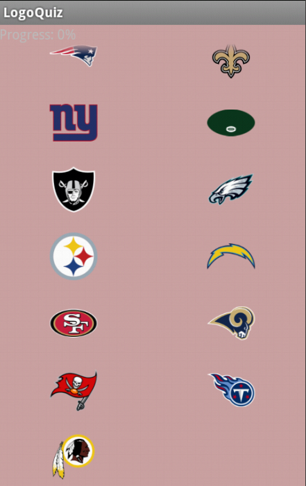 Are you a Football team logo pro? Test your knowledge with Sports Logo Quiz Football! Featuring all 31 teams your knowledge will be tested with this low file size Football team logo quiz. This logo quiz has fast loading screens and an easy interface for maximum fun! Go ahead and download Sports Logo Quiz Football for free now!