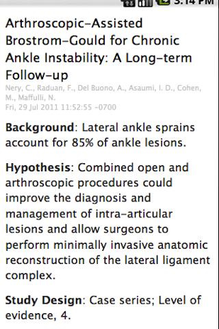 SportsMed presents up to date information in the form of abstracts related to sports medicine, orthopedics and injury from a range of sources including Orthopedic Specialty Peer-Reviewed Journals and Web based media reports.