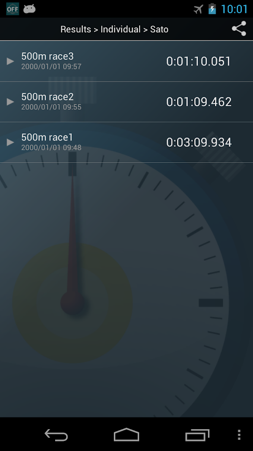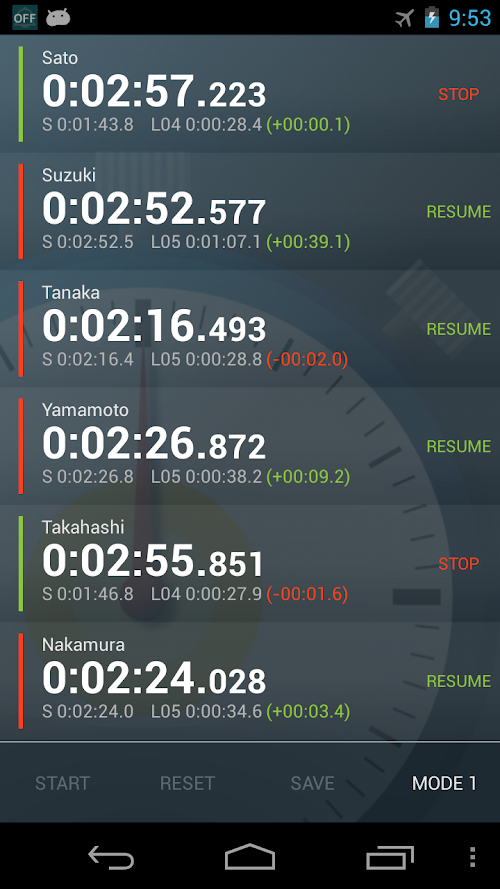 This stopwatch is capable of measuring/recording multiple players’ times. Players’ names can be added to the records and stored with the name of the games. The records can be shared with emails or messaging applications. Try to use it in any field of group trainings as swimming or athletics. Perfect for coaches and managers.