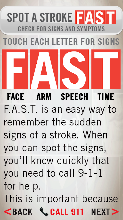 If you are looking to download other versions of Spot a Stroke F.A.S.T. Android App, We have 1 version in our database. Please select one of them below to download.