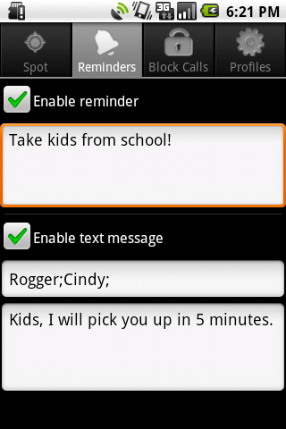 Reminds you based on your location. It can also block calls and change to vibrate when within a specific proximity