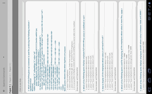 So we have included SQL / Data base tables in every paper in the top help section, where ever it is required.