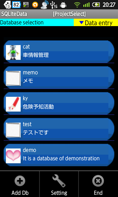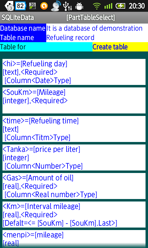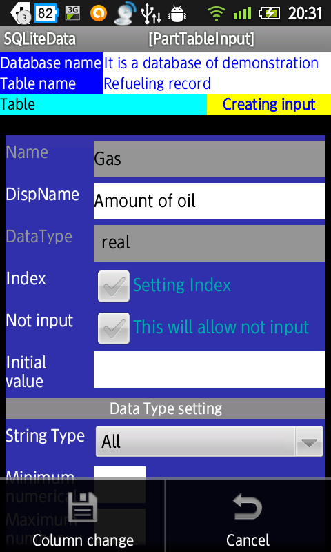 Item name you can set the Japanese the "item name" in addition to the name to be used in SQLite, says it is easy to understand when you enter.