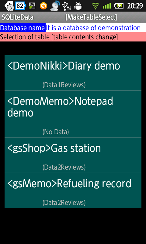At any time, non-type Because you can change the name and item to be used in SQLite, I can freely enter and test the specified value and the name of the display.