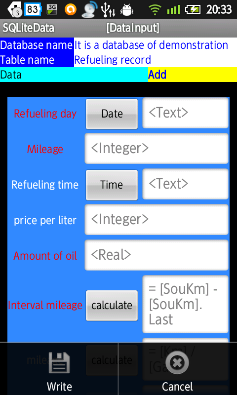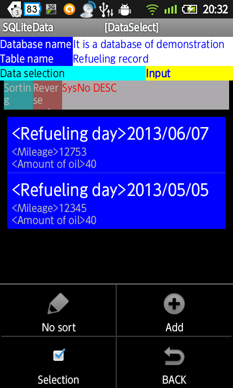 Since SQLiteData can freely create input fields, memo input. Car fuel consumption management. Weight management.You can create a favorite such as databases.