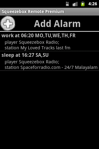 Schedule multiple alarms with choice of upto two stations for each alarm. If first station cannot be reached second station is tried. Works much more reliably compared to the default alarms on SB. If alarm cannot be started, optional local alerts triggered on phone.