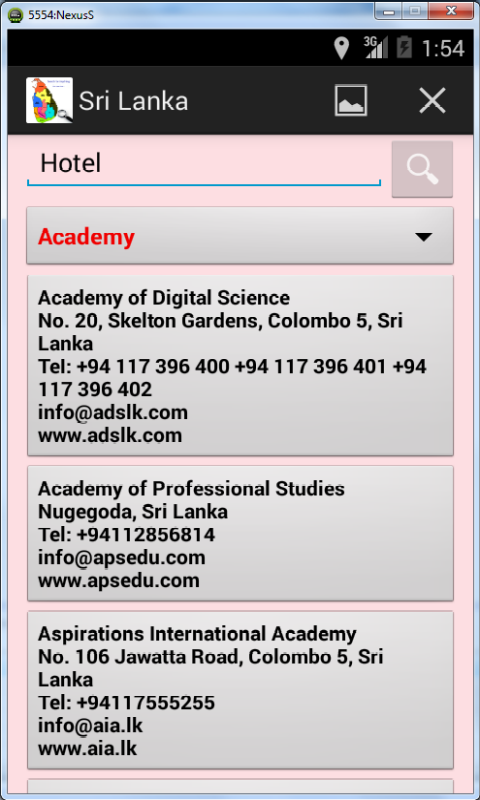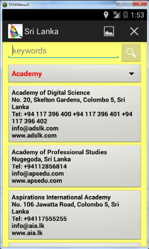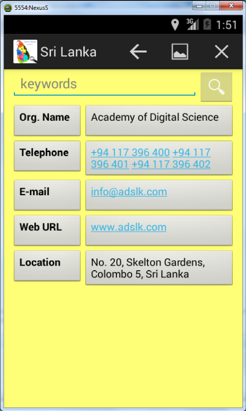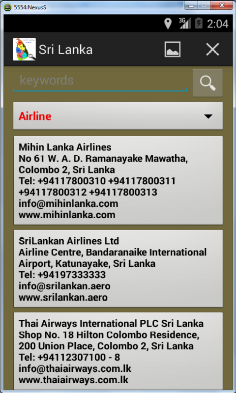 Contact information of Sri Lankan web sites fully searchable by keywords, organization category or service name.