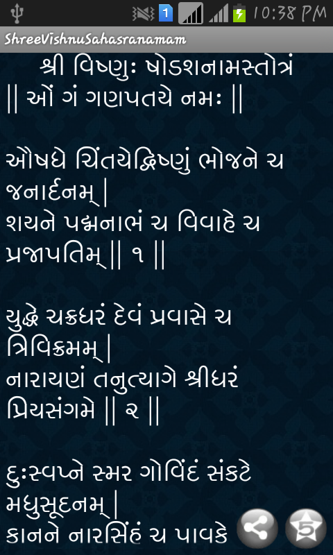 Shree Vishnu Sahasranamam is a list of one thousand names of Lord Shree MahaVishnu which is one of the most sacred and commonly chanted stotras. With this app, sahasranamam is made available in clear Gujarati font.