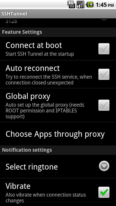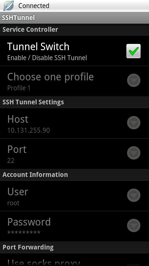 SSHTunnel is a SSH tunnel app for Android System. With this app and a configured server (typically configured with sshd and nginx / squid), you can easily browse internet through a SSH tunnel on your android devices.