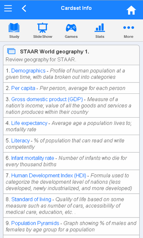 Using Flashcard will help you learn faster and remember more in a shorter time by showing flashcards just before you will forget them. STAAR Flashcards app has several learning modes: Study, Slide show, Matching, Memorize, Quiz to make the learning process for STAAR exam more exciting and fun.