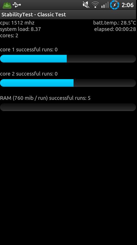 StabilityTest is a CPU, GPU, RAM/memory stress-testing tool for your device, whether stock and unrooted (limited functionality) or rooted and overclocked with SetCPU, SetVsel or similar tools.
