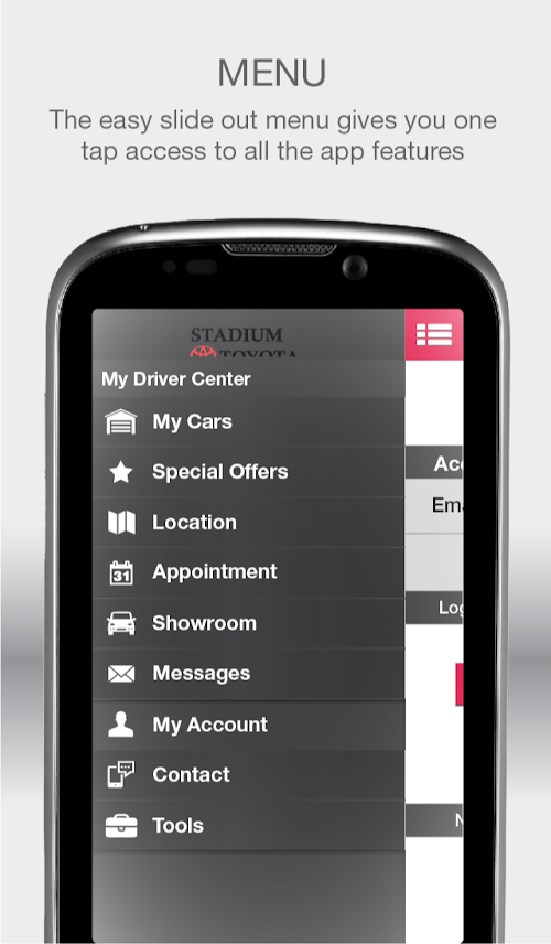 Make your vehicle ownership experience easy with the free Stadium Toyota mobile app. This feature-rich app allows you to get the most out of your vehicle by helping you to maintain and organize essential car details like service history, as well as save money with mobile offers and coupons!
