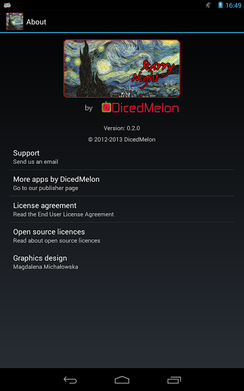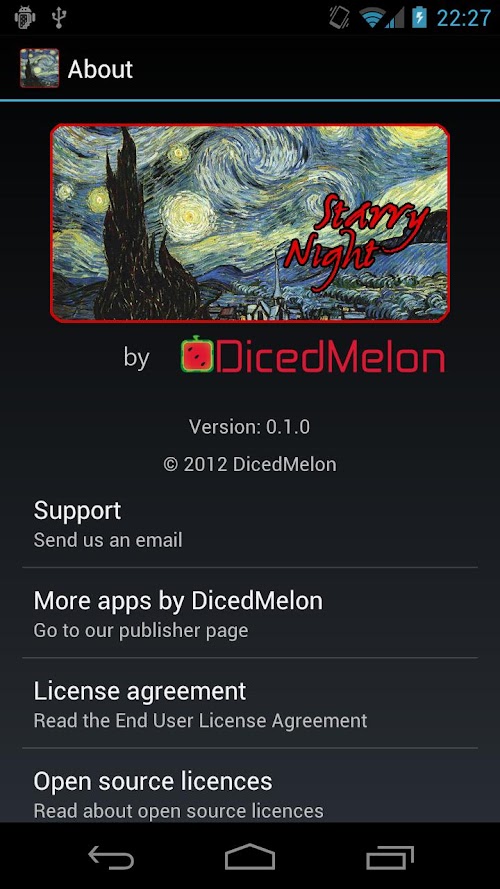 This version of Starry Night 3D Android App comes with one universal variant which will work on all the Android devices.