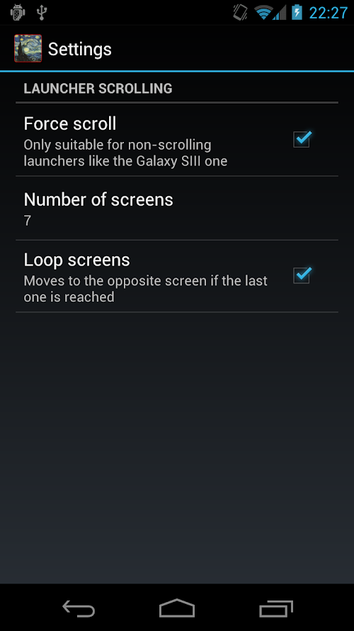- Scrolling simulation for non scrolling launchers (Galaxy SIII)