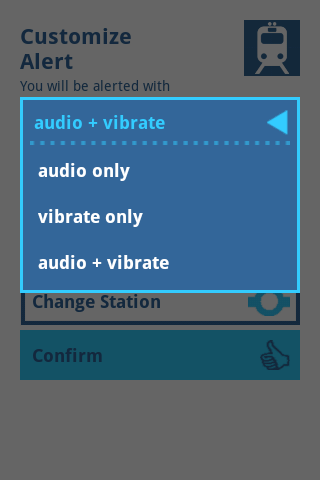 Get to know the remaining distance to reach your station, and configure your alert type and the alert range.