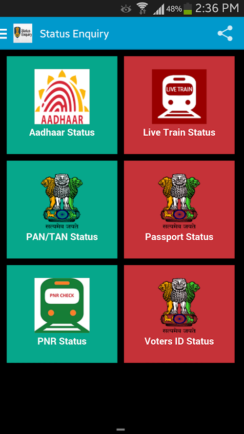 Check Your Status Of Aadhaar Card, PAN / TAN Card , Voters ID , Passport ,PNR and Live Train Status In Our Simple Single App