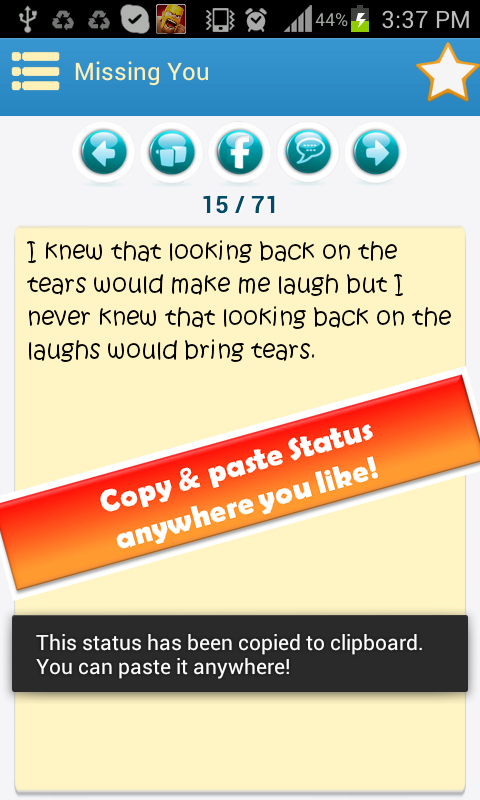 1. Rich collection: over 5000+ statuses, messages, quotes with more than 50 categories for all occasions