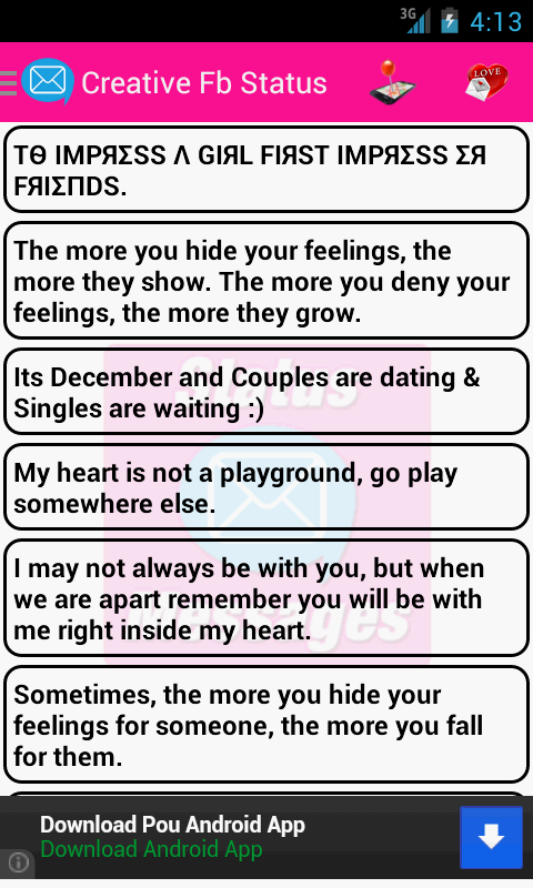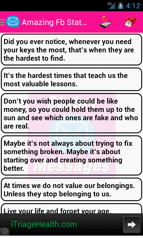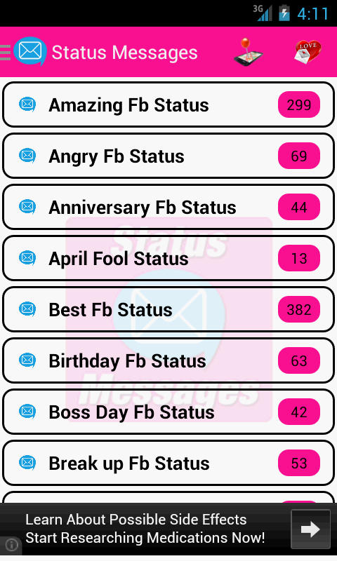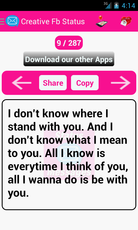 If you are looking to download other versions of Status Messages Android App, We have 1 version in our database. Please select one of them below to download.