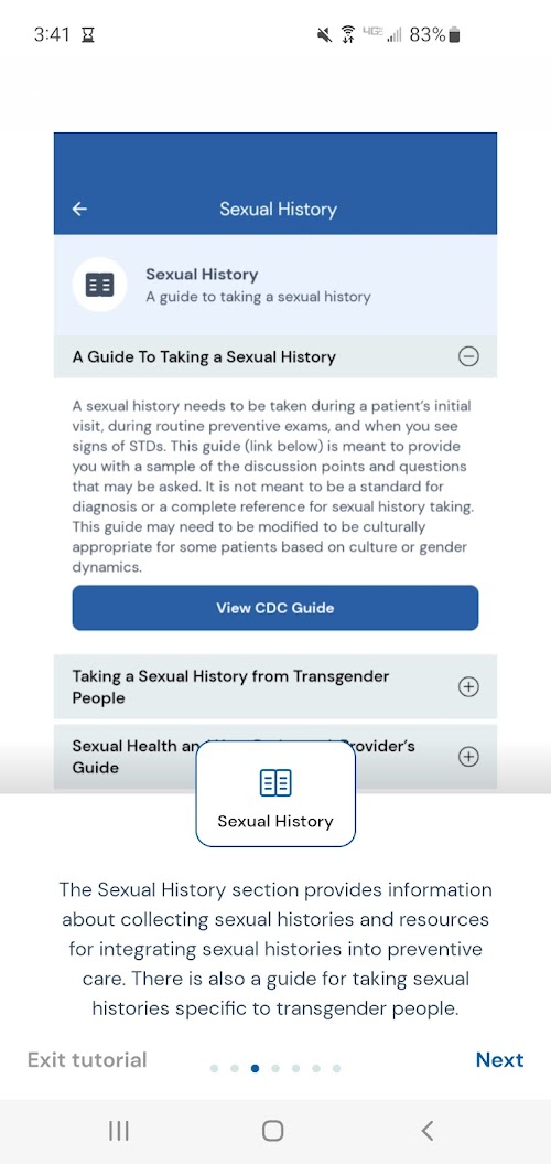 The new app offers quick and easy access to streamlined STI prevention, diagnosis, and treatment recommendations. The user-friendly interface includes more clinical care guidance, sexual history resources, patient materials, and other features to assist with patient management.