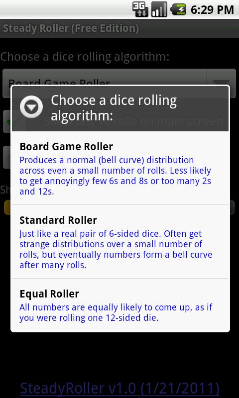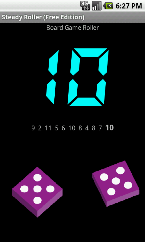Ever played a game like Settlers of Catan and wondered why your 6s never came up? Or why there were no 9s for half the game? Well, SteadyRoller can fix that for you. SteadyRoller is a dice rolling simulator with the optional ability to adjust rolls so that they are more likely to have a normal distribution for even a small number of rolls. Of course, you can turn that off and use it as a standard dice roller instead.