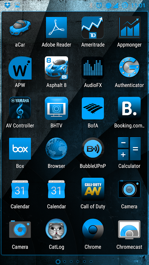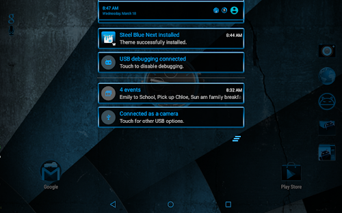 This gorgeous dark theme, with great blue tones, gives your phone a completely different look and feel from stock. It’s one of the most comprehensive themes out there.... and we keep working to make it better.