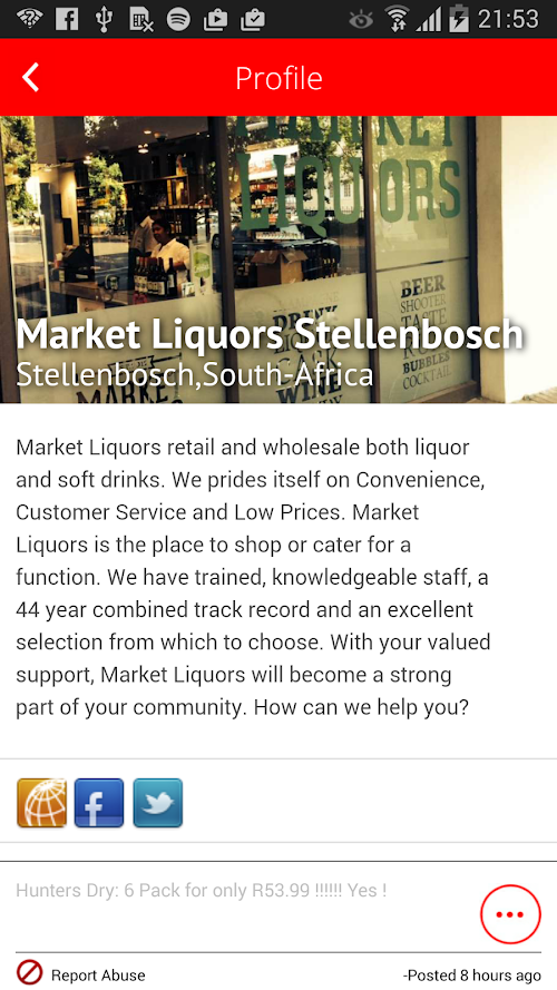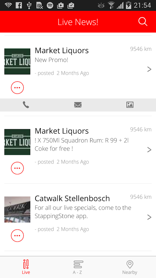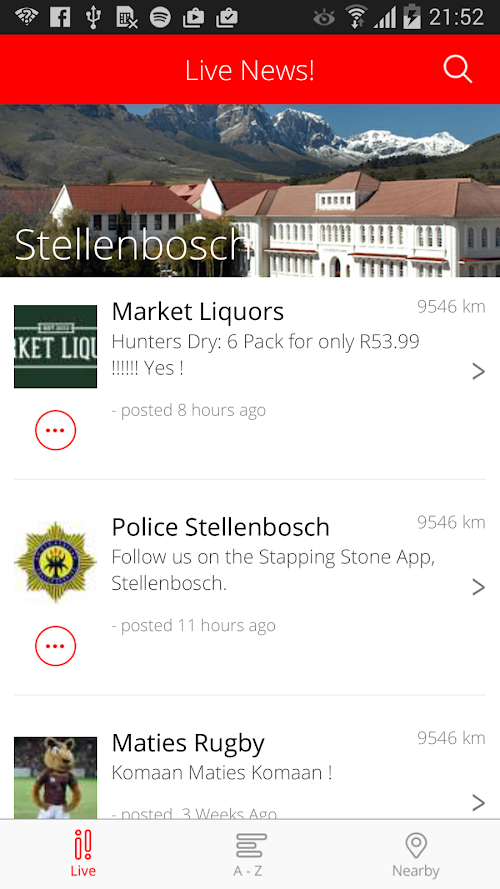 Welcome to Stellies! Enjoy this app with all live information about Stellenbosch. The live content refreshes automatically because of the unique features of this Stapping Stone app, making it possible for local businesses like bars, restaurants, shops etc. to post news, information and special offers live in the app, without you needing to update the app! All you need to know to enjoy your stay in Stellenbosch, you will find in this new Stapping Stone Stellenbosch - Stellies app!Welcome to Stellies! Enjoy this app with all live information about Stellenbosch. The live content refreshes automatically Because of the unique features of this Step Pingstone app, making it possible for local businesses like bars, restaurants, shops, etc. to post news, information and special offers them in the app, without you Needing to update the app ! All you need to know to enjoy your stay in Stellenbosch, you will find in this new Step Pingstone Stellenbosch - Stellies app!