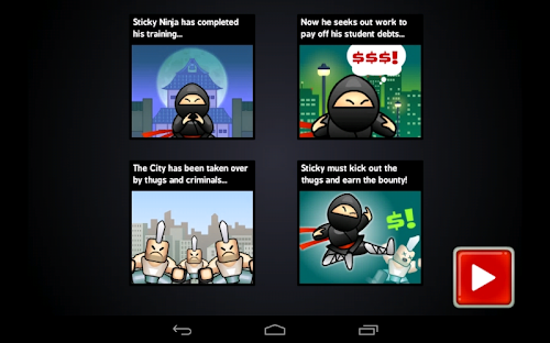 Sticky Ninja has completed his training and must now pay off his student debts as a Bounty Hunter, cleaning up the sticky city streets.