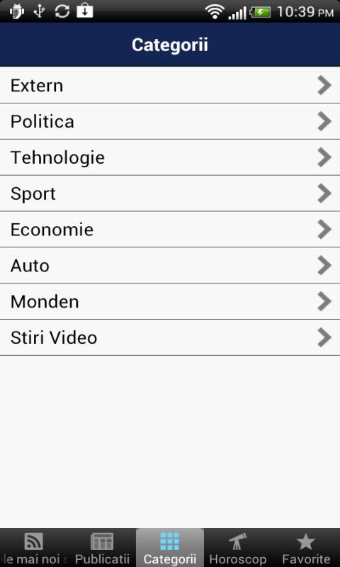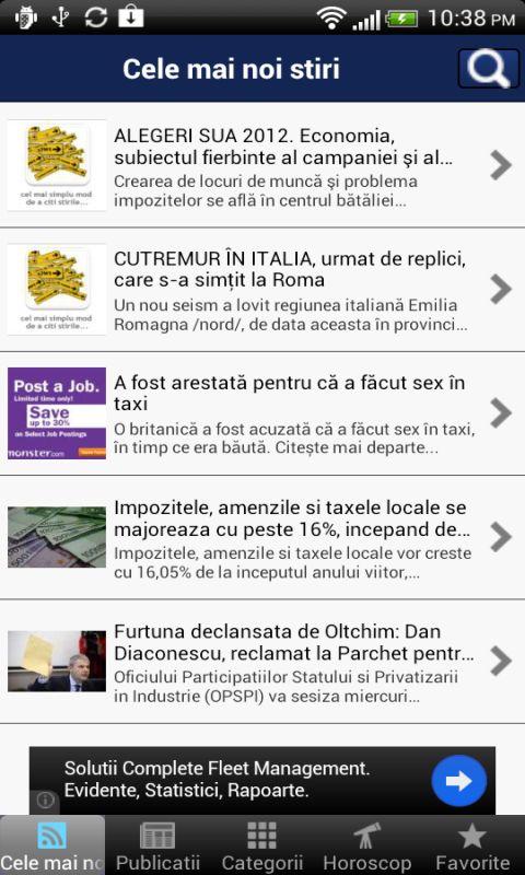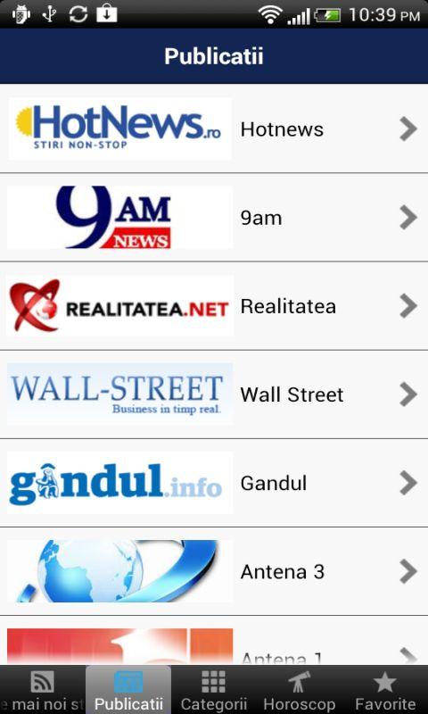 Aplicatia contine informatii din cele mai importante 22 site-uri de stiri si informatii mondene din Romania. Continutul este impartit in categorii si ofera utilizatorilor in fiecare minut cele mai relevante si importante informatii.
