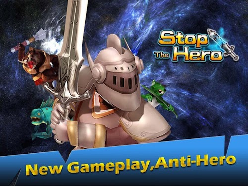 Want to beat the HERO? Lead your monster army to destroy that stupid hero! Stop The Hero is an epic action strategy game. Being the evil master, you have summon monsters and use your own strategy to knock the hero out of your dungeon.