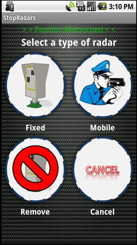 StopRadars is a speed camera warning system using FoxyTag, the worldwide most complete speed camera database. It signals fixed speed cameras, mobile speed cameras and ghosts (places where there are often speed controls).