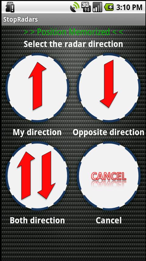 Note for developers: This application is built over the FoxyTag Android API, available for free at http://www.foxytag.com. StopRadars is currently part of a set of 4 applications (Cam Tag, iRadars, SpotRadars and StopRadars) that differentiate themselves only by their UI and by the way the ads (lite versions) are presented to the user. A study of the download statistics will then be carried out in order to determine the most appropriate UI for a speed camera warning system.