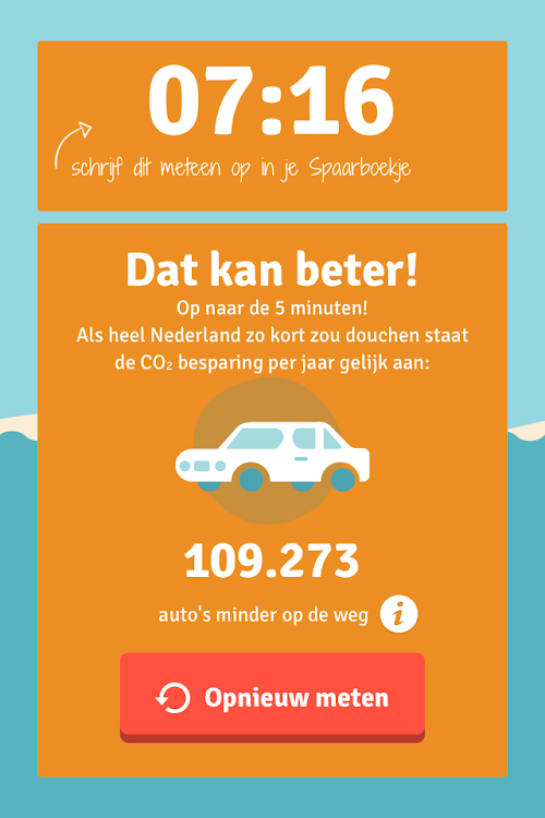 Enter your shower times that you are measuring with the app in the correct meter via the website, www.waterspaarders.nl This way you can easily keep track of your shower behavior.