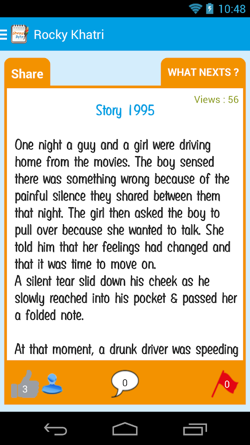 In this busy word people don't gets time to write / read long paragraph. For that we have introduced idea for writing and sharing short stories with friends and family.