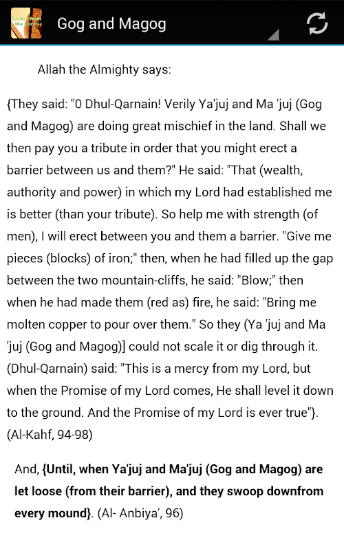 This is an Islamic App, the Book is extracted from the Book of Imam Ibn Kathir "Al-Bidayah Wan-Nihayah", including information from the Quran and Hadith as revealed to the Prophet Muhammad (peace be upon him) to whom Islam was revealed. Stories include Gog and Magog etc. Download and Learn.