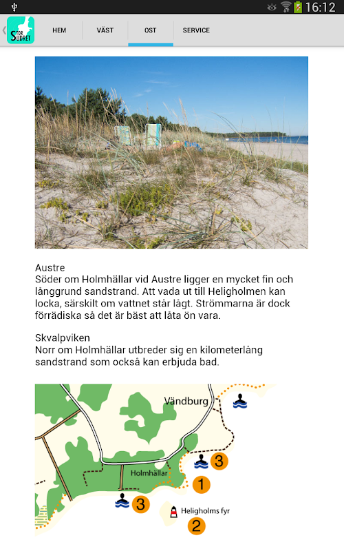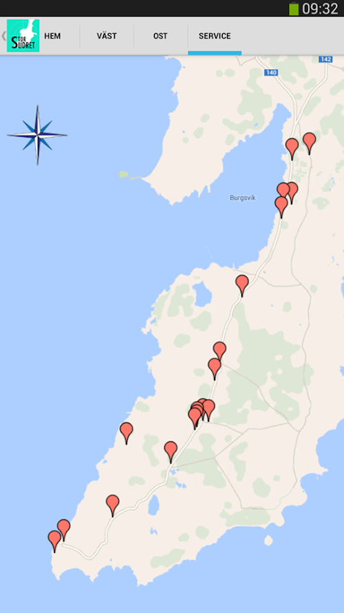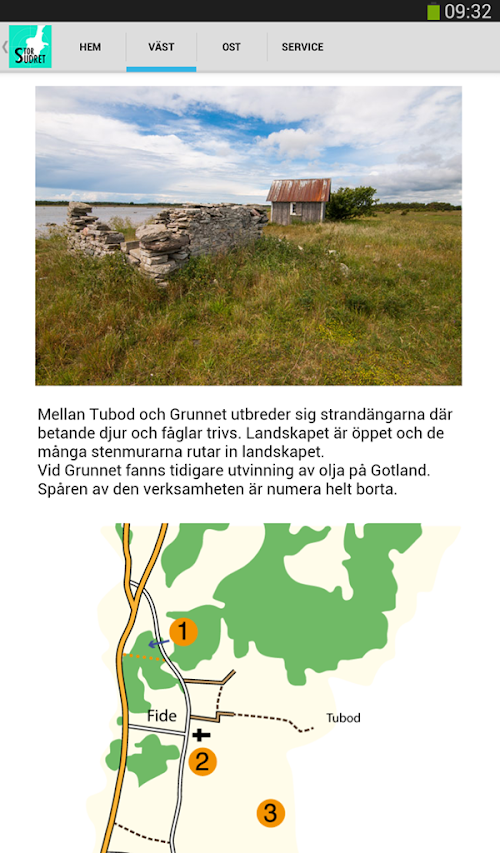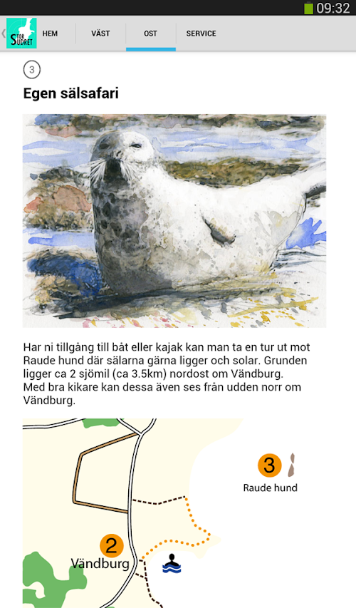 Guiden är designad för att användas OFFLINE och ONLINE. Det gör att ni alltid har tillgång till kartor och artiklar. Guiden innehåller även en sektion som visar vägen till lokala entrepenörer.The app shows the way to places on Storsudret where sun, sea and nature interact in a unique way.