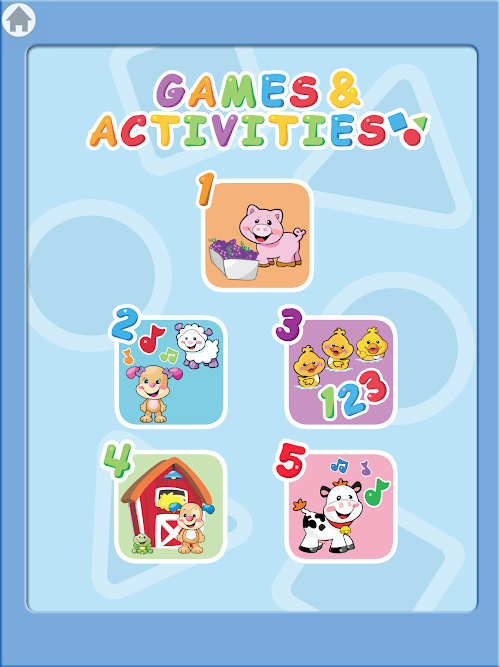 • 5 games/activities featuring: Animals, Peek-A-Boo, Shapes, Sounds and more!